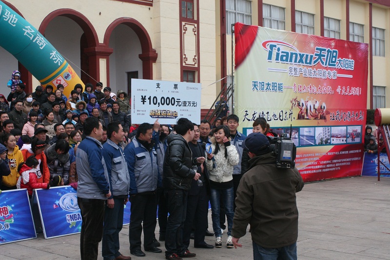 2012年3月18日山东电视台《超级运动会》栏目组应山东龙光天旭太阳能公司邀请来我市进行现场节目录制活动。本次活动不仅能丰富了广大群众的业余文化生活更能在省级媒体上宣传诸城悠久的文化历史及旅游推荐,同时提升了天旭公司的知名度。天旭太阳能自2007年加大市场投入以来,产品的知名度和美誉度不断提升,由原来的区域品牌提升为山东省名牌产品、中国驰名商标品牌。产品的销售也从单一山东市场发展到畅销全国17个省市,并远销以色列、智利、东南亚等多地区。